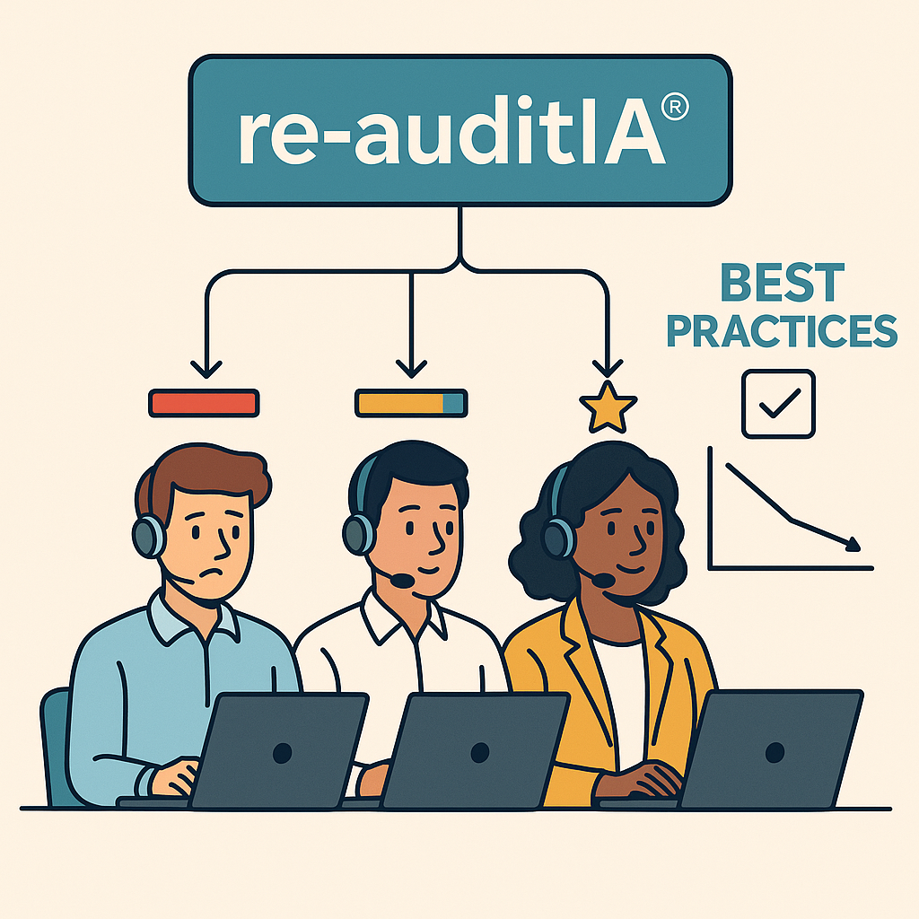 En resumen, gracias a su capacidad para entender el contenido real de las conversaciones, re-auditIA® permite que muchas tareas que antes dependían de la memoria y del tiempo que se le dedique a auditar al agente pasen a ejecutarse de forma autónoma y fiable, liberando capacidad para lo que ninguna IA puede suplir: la conexión humana con el agente y con el cliente final.